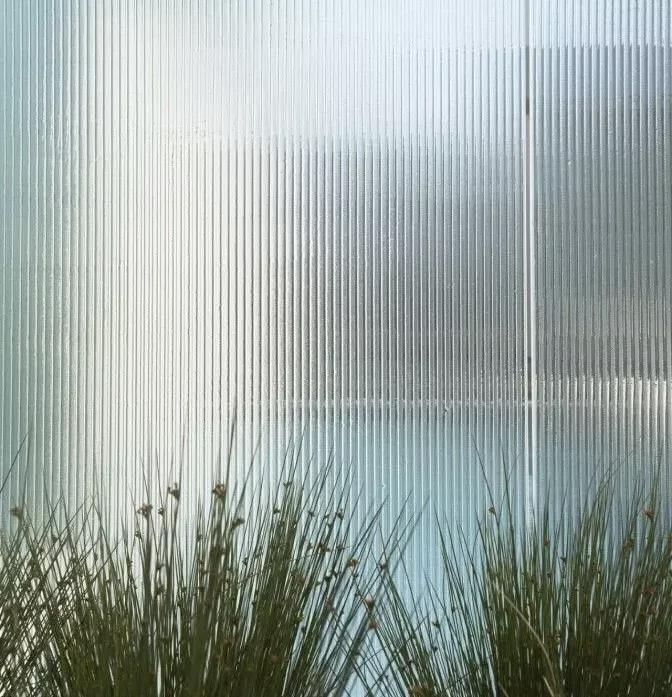 簡(jiǎn)單的垂直長(zhǎng)條紋,延伸并折射被阻擋的物體,給人垂直拉伸的視覺(jué)體驗(yàn)。